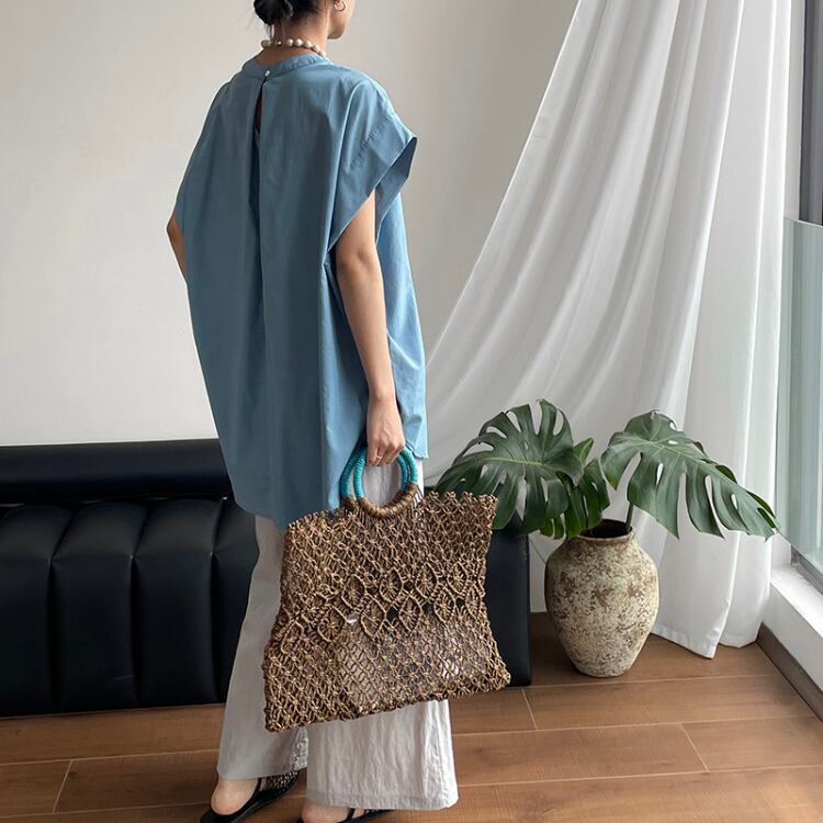 ゆったりとしたシルエットとラウンドネックが魅力のフレンチスリーブブラウス。